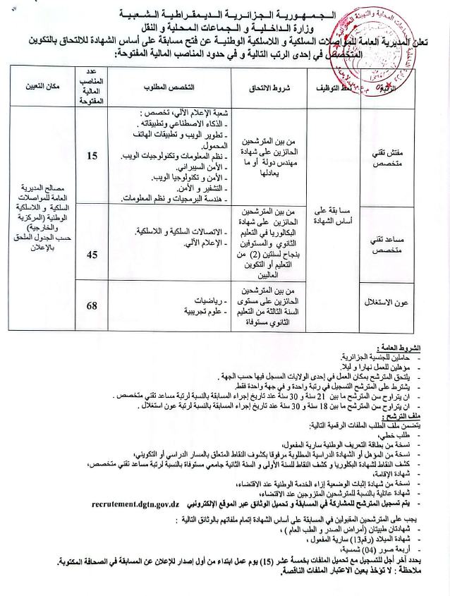 المديرية العامة للمواصلات السلكية واللاسلكية تفتح مسابقة توظيف