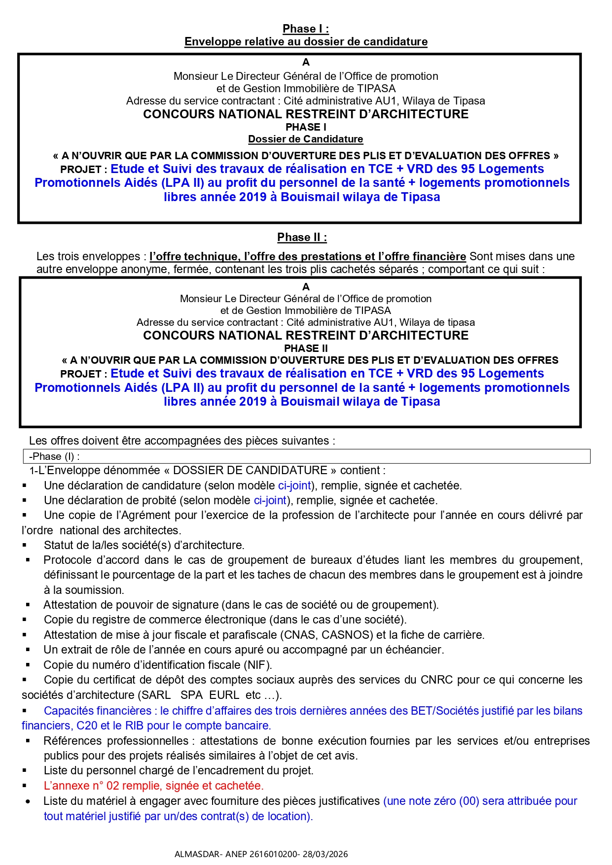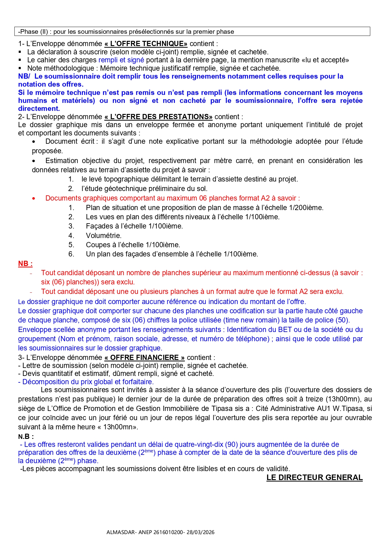 الزبون: Office de Promotion رقم ANEP 2616010200 تاريخ النشر: 2026-03-28 عدد الصفحات: 3/4