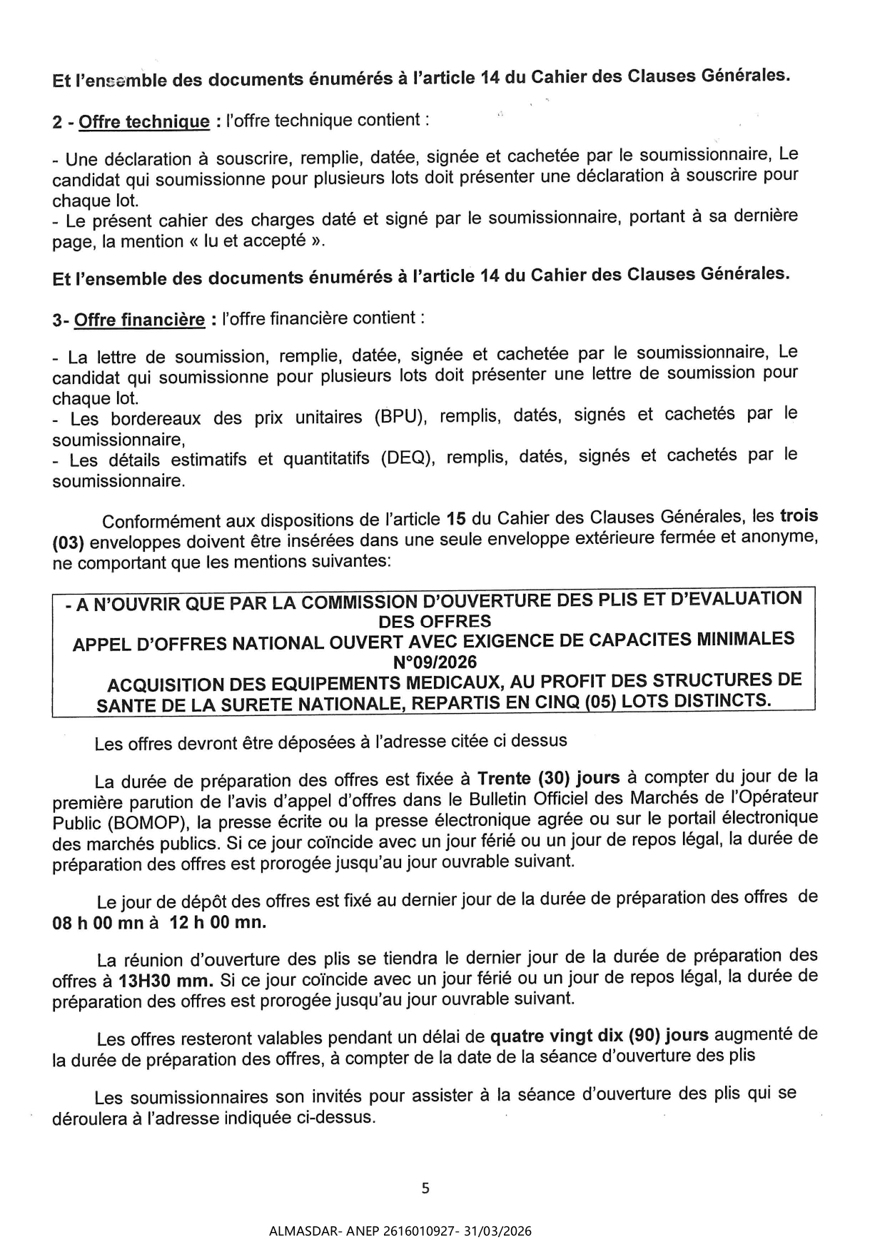 الزبون: DIRECTION GENERALE DE LA SURETE NATIONALE رقم ANEP 2616010927 تاريخ النشر: 2026-03-31 عدد الصفحات: 1/2