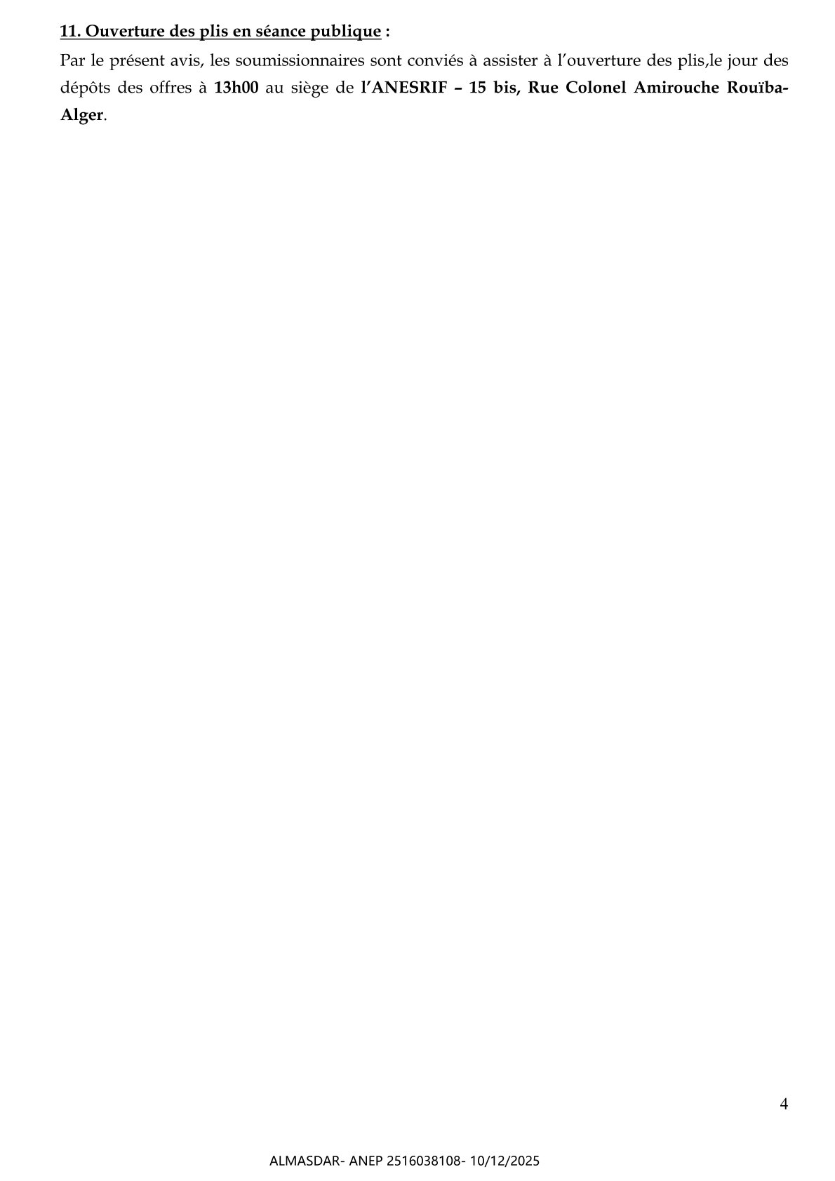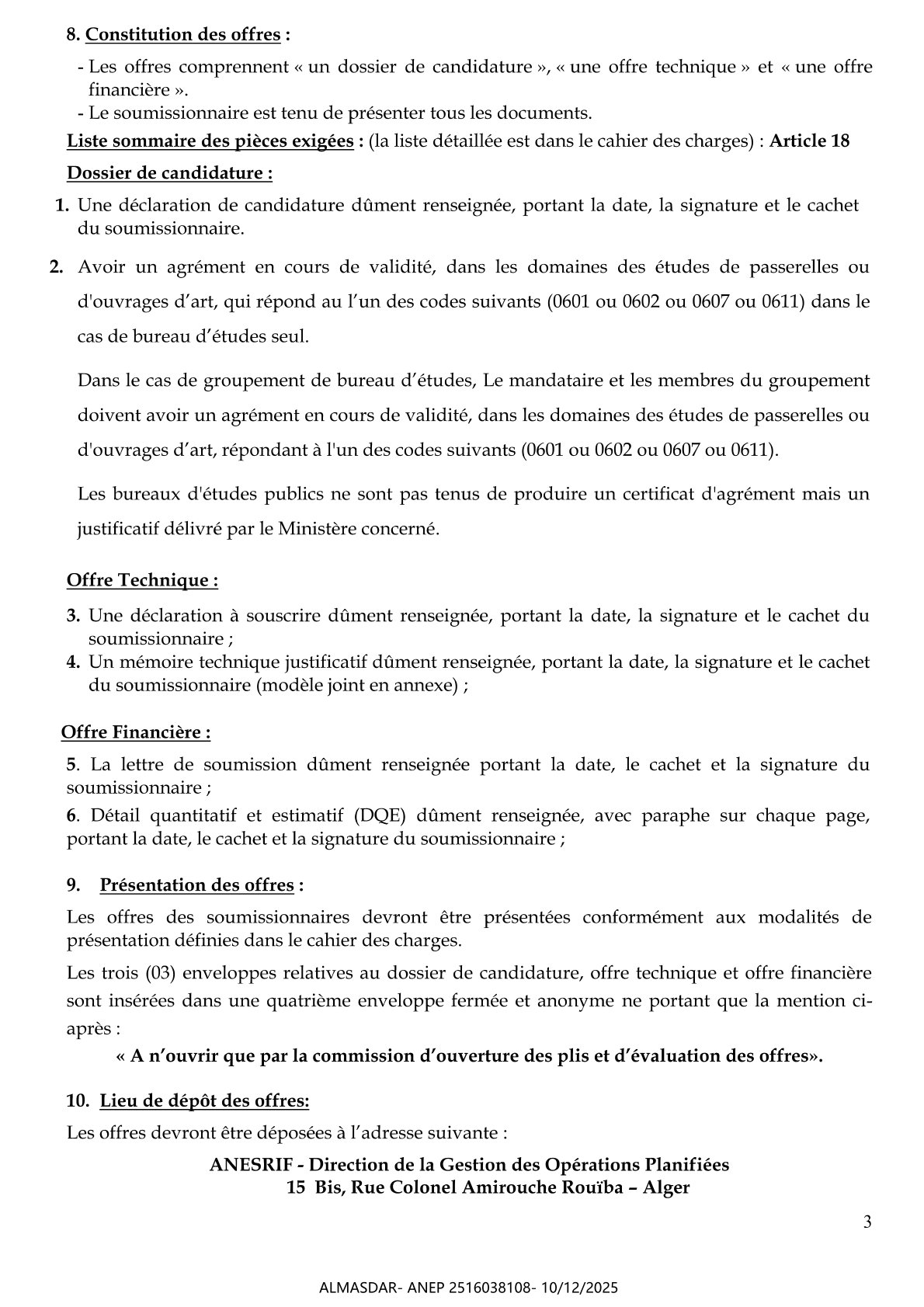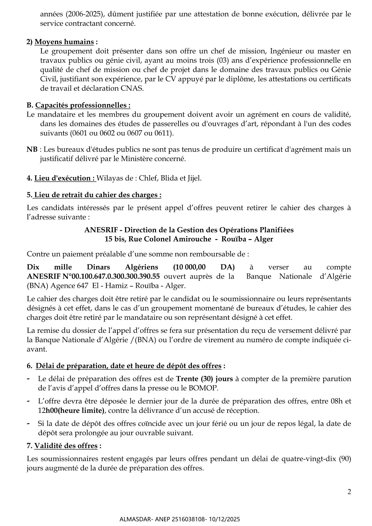الزبون: AGENCE NATIONALE D'ETUDES ET DE SUIVI DE LA REALISATION DES INVESTISSEMENTS FERROVIAIRES رقم ANEP 2516038108 تاريخ النشر: 2025-12-10 عدد الصفحات: 1