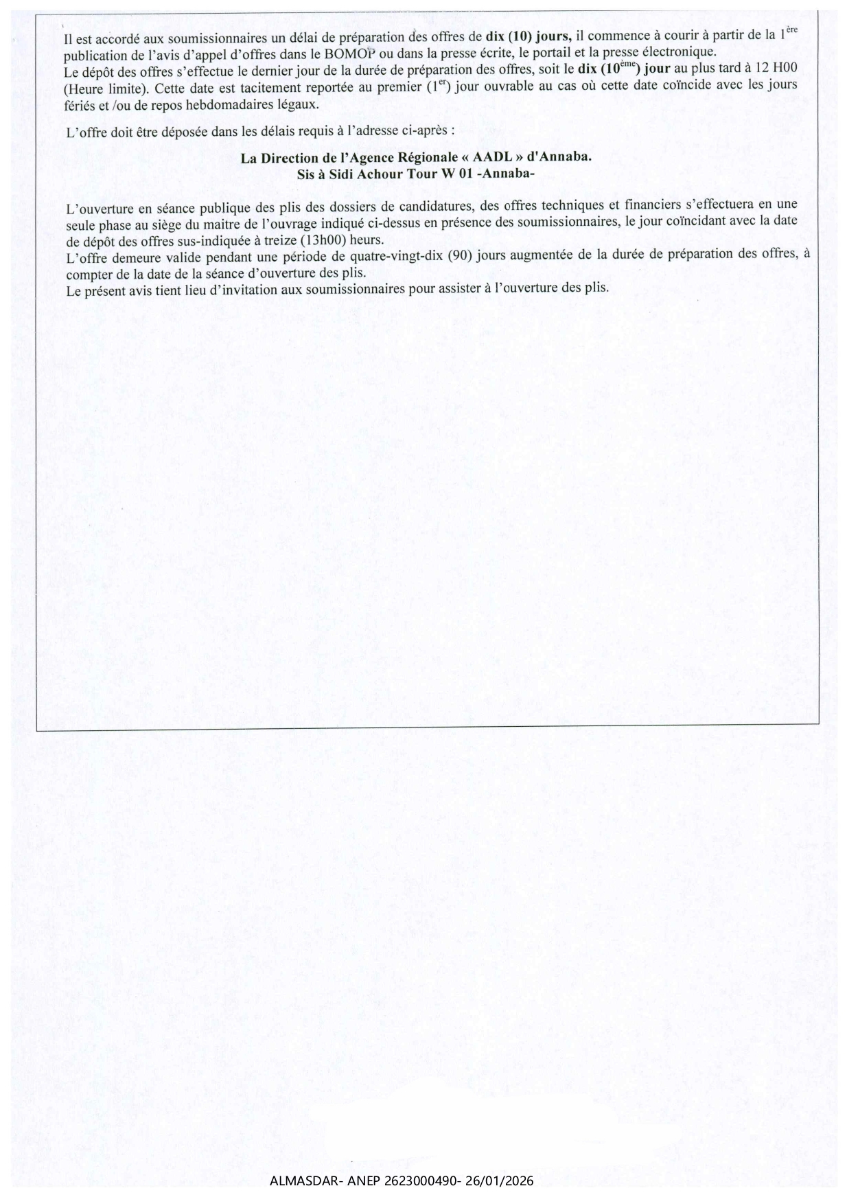 الزبون: AADL ANNABA رقم ANEP 2623000490 تاريخ النشر: 2026-01-26 عدد الصفحات: 3/4