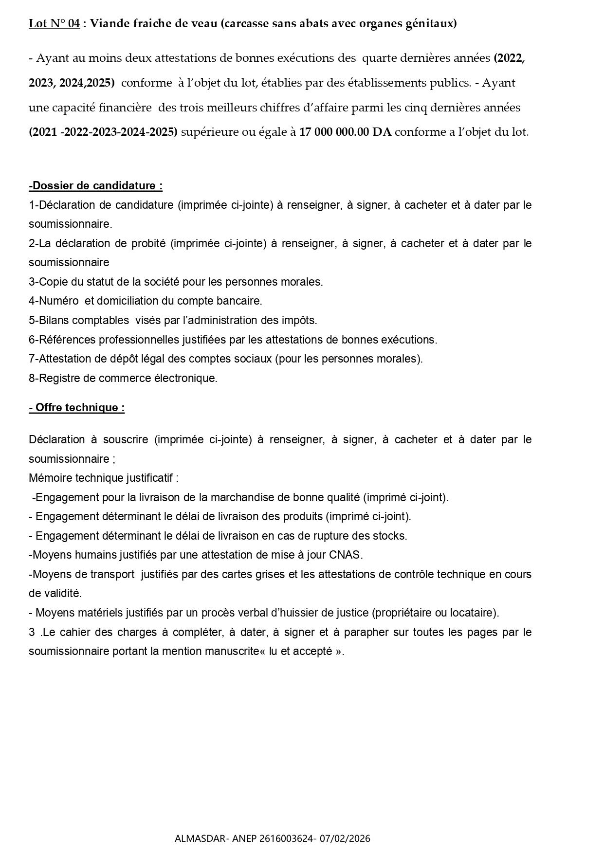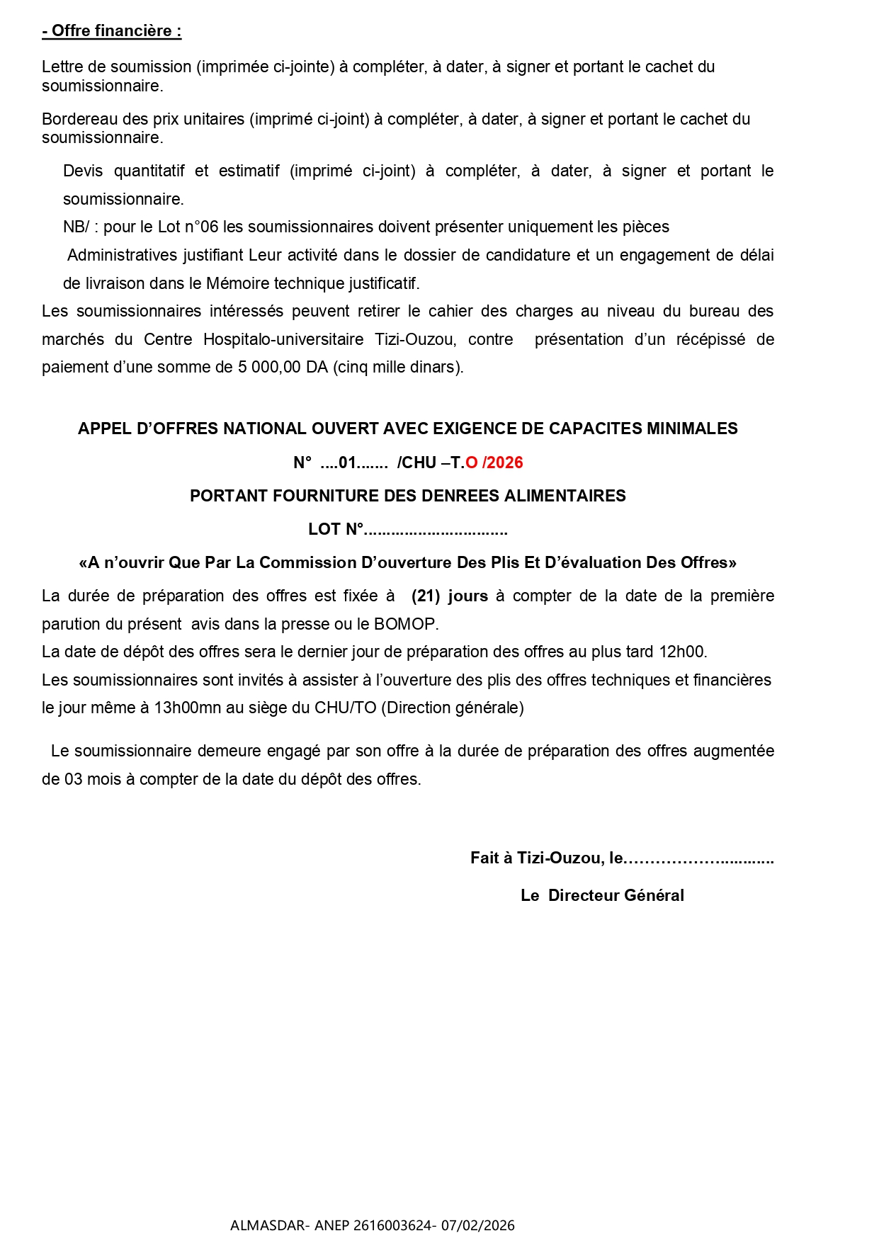 الزبون: CENTRE HOSPITALO-UNIVERSITAIREDE TIZI-OUZOU رقم ANEP 2616003624 تاريخ النشر: 2026-02-07 عدد الصفحات: 3/4