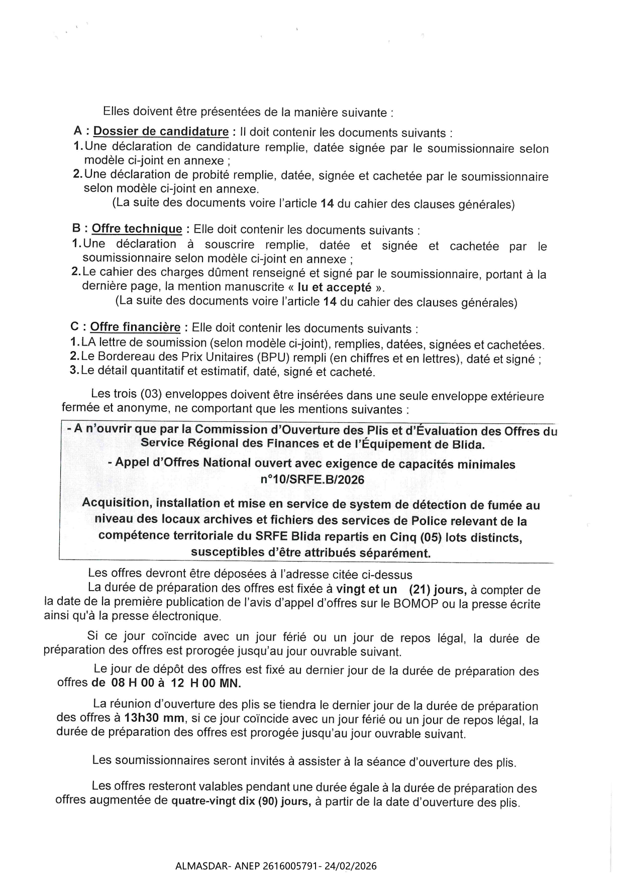 الزبون: المديرية العامة للأمن الوطني رقم ANEP 2616005791 تاريخ النشر: 2026-02-24 عدد الصفحات: 1/2