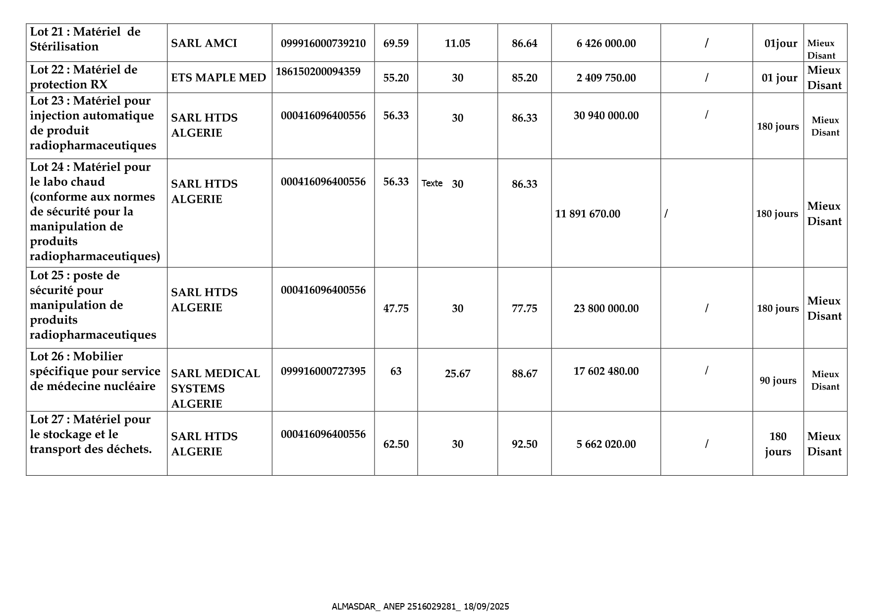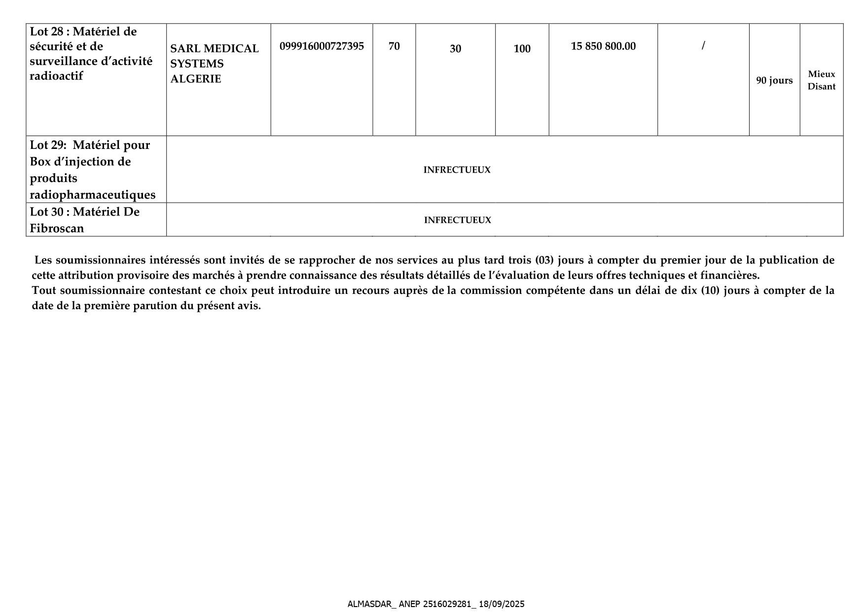 الزبون: le centre hospitalo-universitaire de tizi ouzo رقم ANEP 2516029281 تاريخ النشر: 2025-09-18 عدد الصفحات: 1